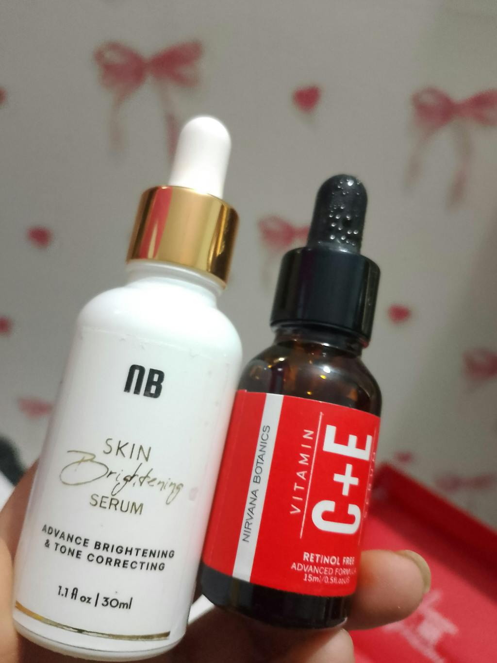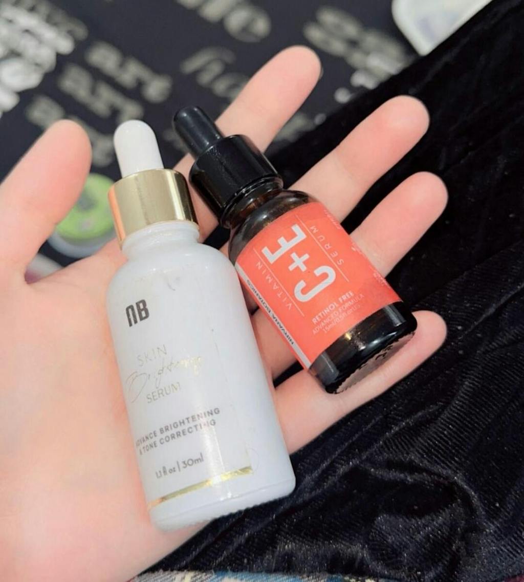 - Start with the Skin Brightening Serum—it’s water-based, so it goes on first.